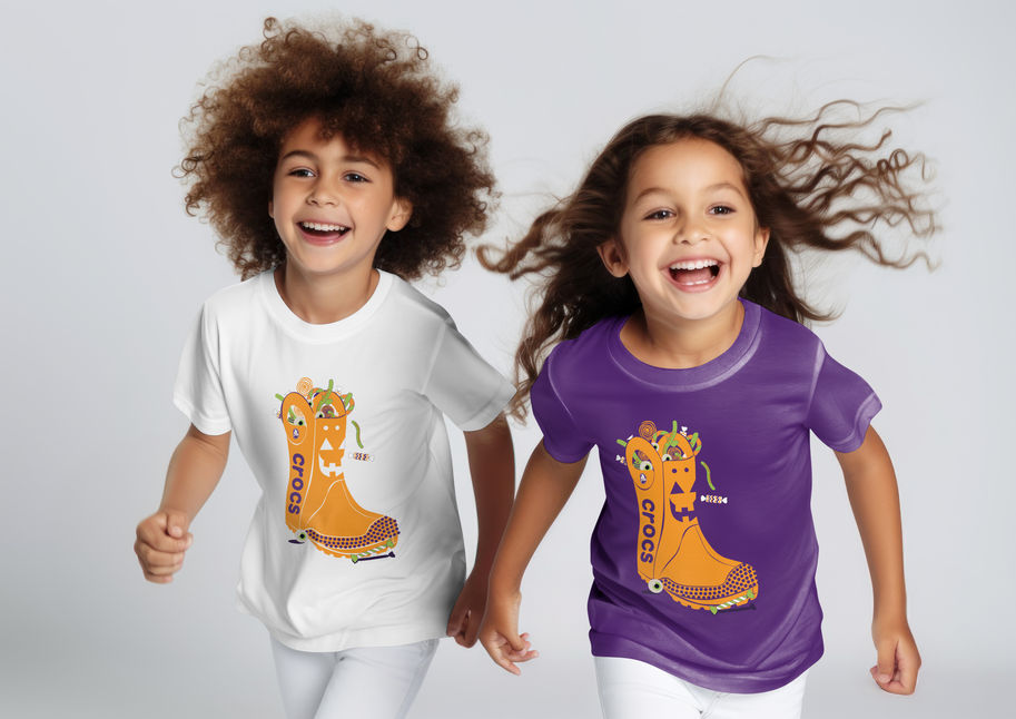 The challenge was to turn this into a Halloween-themed t-shirt for kids, so the design shifted into something much more playful and character-driven.